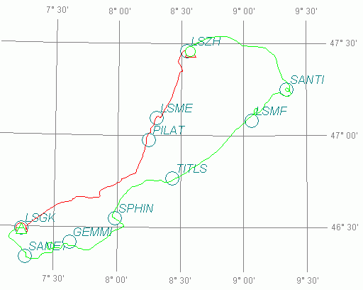 Zürich-Saanen-Jungfrau-Zürich. Dargestellt mit Backtrack.